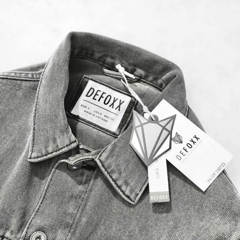 Áo khoác jean Defoxx xuất dư màu xám bạc không chỉ nổi bật về thiết kế. Mà còn đảm bảo chất lượng nhờ quy trình kiểm soát nghiêm ngặt đạt chuẩn xuất khẩu. Từ tag mác đến các chi tiết kim loại đều được hoàn thiện kỹ lưỡng, xác nhận sản phẩm hàng chính hãng, nguồn gốc rõ ràng.